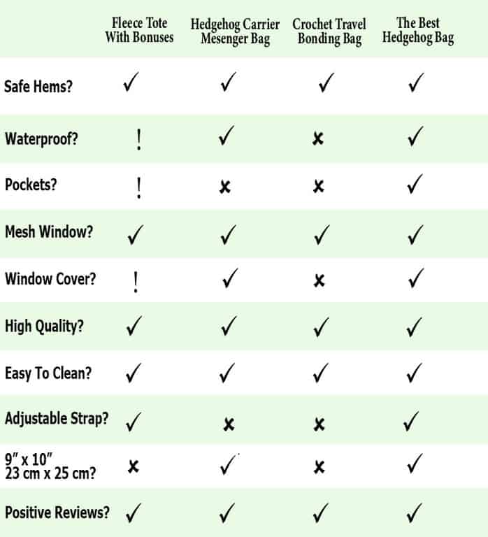 Sometimes vets aren't close by, so that's really when preventative measures mean so much when it comes to a travel bag. We appreciate a talented seamstress or clothier who ensures that each seam is hidden; preventing loose strands that will cause such awful experiences! A great hedgehog carry bag HAS to be safe.